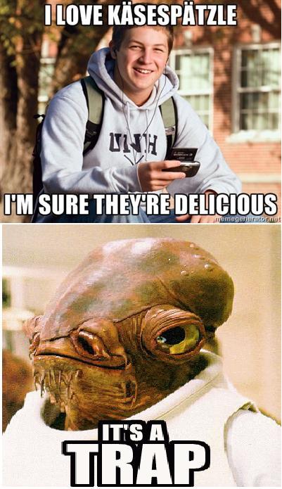 8. Заради едното ви меме избягвах Käsespätzle-то първите два месеца ;’D. Хора, спокойно си го яжте, дори като мензаманджа си го бива – поне в Бавария, де.