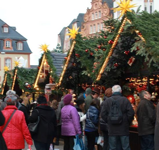 Коледа сякаш е моментът от годината, който Триер цяла година е чакал, за да покаже очарованието си съвсем естествено и неподправено. Бидейки малък град, който не кипи от събития, разположен в мозелската долина, която пък често е причина за лошо време и липса на слънце, Триер успява за сметка на това коледно време да се сгуши удобно между хълмчетата си и да събере всички жители в сърчицето си – Коледния базар. Типично немската архитектура в центъра, умело поставените светлини и малките дървени къщички на Коледния базар в съзвучие допринасят за коледния дух. На Триер никак не му е трудно да бъде коледен, архитектурата и усещането, което ти носи самият град, са на малко населено място, в което хората се познават и живеят хармонично, отделяйки достатъчно време и внимание на празници и традиции. Коледният базар, разположен на Хауптмаркт се състои от малки дървени къщички, предлагащи различни коледни лакомства, напитки и сувенири. Често се организират и игри за децата. Греяното вино е най-емблематичният символ на всички немски Коледни базари, за това и в Триер му е обърнато нужното внимание. Навсякъде се продава греяно вино, ноо от триерлийци кореняци съм чувала, че второто заведение в пресечката(Sternstrasse) между Hauptmarkt и Domfreihof е най-хубавото! Тъй като сградата на моята специалност е близо до центъра, всяка пауза между лекциите си се сгряваме с по някое винце и се връщаме със зачервени бузи, устни и бляскави очи.