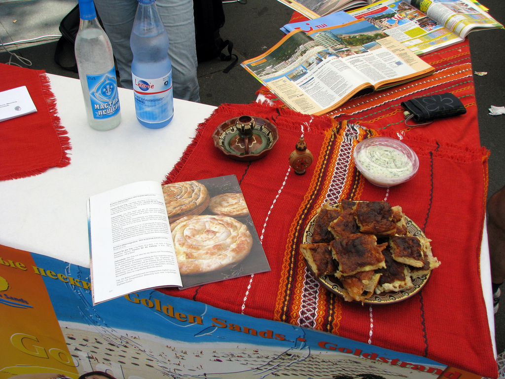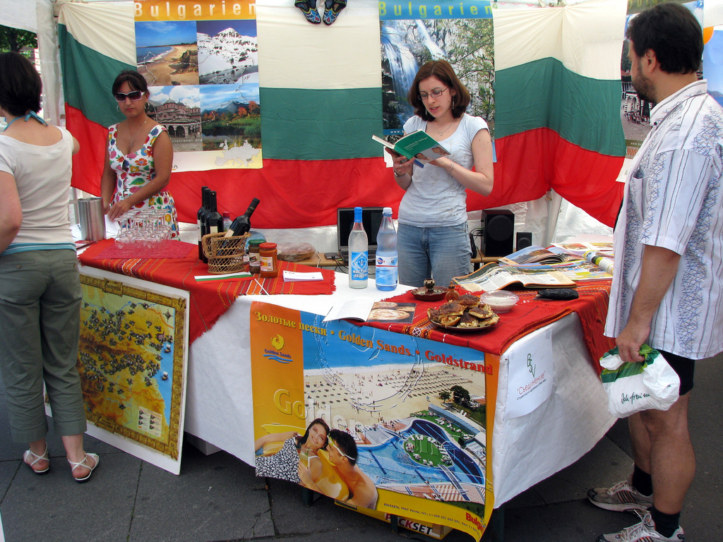 Щандът представляваше палатка на около 6 кв.м. с две маси. В рамките на 2-3 седмици успяхме да се организираме и да приготвим няколко баници и голямо количество таратор, за да могат посетителите да вкусят българска кухня. Щандът беше облепен със знамена и гледки от България. Отделно имаше и импровизирана изложба на снимки от родината. Поканихме Светлозар Бошев, който внася български вина в Германия. Той организира дегустация, която събра доста немци в този почивен ден. Накрая присъстваше и аматьорска танцова група от сдружението „Златен век“ в Erlangen-Nürnberg.