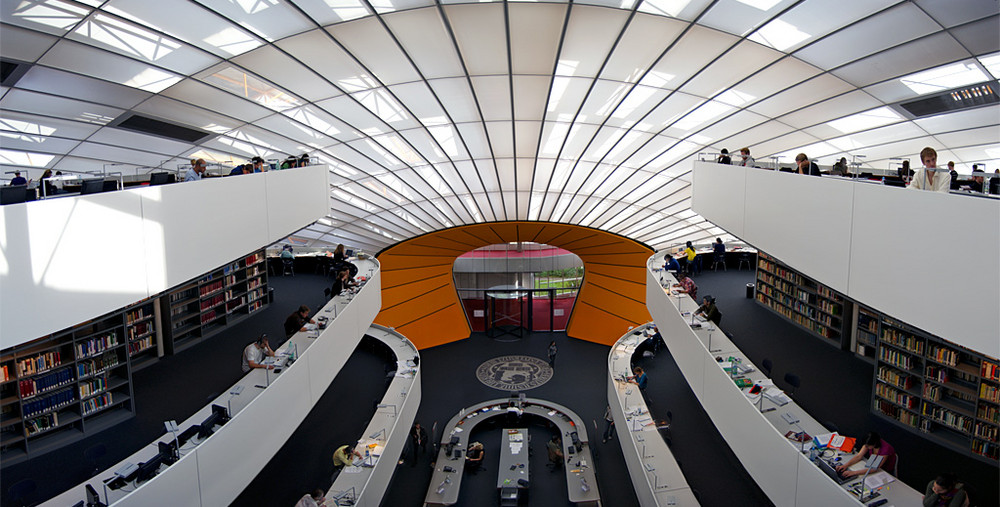 безапелационният лидер – библиотеката. Това със сигурност е най-посещаваното място в кампуса по време на изпитите. Сутрин в 8 може и вече да е късно да си намерите място, всички учат, а времето е малко. За щастие нашата библиотека е една от най-готините в Германия – работи 24/7/365 (или може би без Коледа и Нова година, но кой ли учи тогава…), така че в случай че сте по-скоро нощна птица – няма проблем, можете да учите на спокойствие цяла нощ (а в малките часове наистина е спокойно) и да отидете да спите щом най-ранобудните почнат да прииждат. Разбира се, винаги можете да си учите и вкъщи, но библиотеката има предимствата на неограничено количество полезна литература, както и други колеги, които с голяма вероятност имат същия проблем като вас, и който с общи усилия може да бъде решен за отрицателно време. Има още